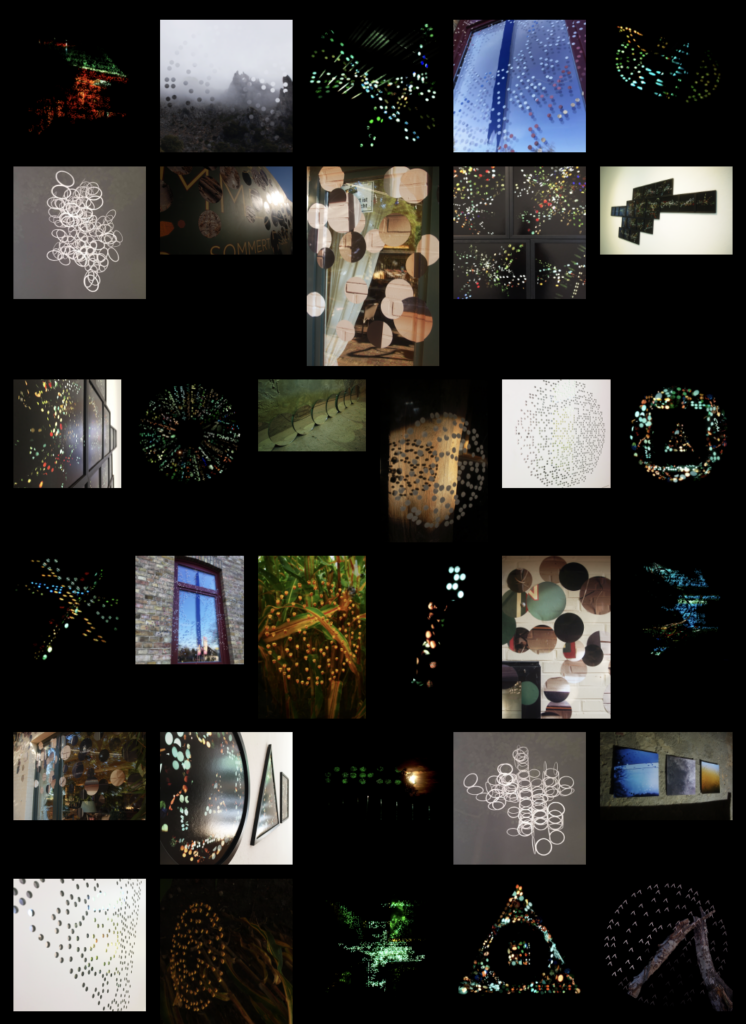 The projects name describes the development of a visual language, which arises from the combination of Braille, the writing of the blind, and visual elements. All the works are based on words in Braille, which are synonyms of the german Verb to see. They permeate, transform and alienate reality in various ways in the images, objects and installations. In this way, the process of visual perception, which consists of seeing and not seeing, becomes a creative element with which she actively intervenes in her environment.